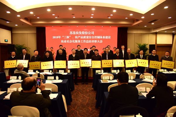 12月19日,蘇墾農(nóng)發(fā)股份公司在南京隆重召開2018年“三秋”、農(nóng)產(chǎn)品質(zhì)量安全控制體系建設(shè)、農(nóng)業(yè)社會(huì)化服務(wù)工作總結(jié)表彰大會(huì)。集團(tuán)公司總經(jīng)理、蘇墾農(nóng)發(fā)股份公司董事長(zhǎng)胡兆輝主持會(huì)議并講話。集團(tuán)公司黨委委員、蘇墾農(nóng)發(fā)股份公司總裁蘇志富作報(bào)告,并宣讀表彰決定。會(huì)議表彰了在2018年“三秋”工作、農(nóng)產(chǎn)品質(zhì)量安全控制體系建設(shè)及農(nóng)業(yè)社會(huì)化服務(wù)工作中表現(xiàn)優(yōu)異、成績(jī)突出的先進(jìn)集體和先進(jìn)個(gè)人。