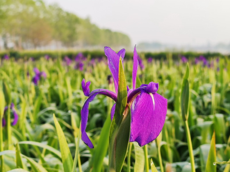 常綠水生鳶尾其特性是為喜冷性植物,分蘗期一般在11月至翌年的3月,該習(xí)性與其他品種的水生植物迥然不同,在需要治理的水體污染物地區(qū),可將其與其他水生植物混栽,由于常綠水生鳶尾旺盛的新陳代謝,即使在隆冬季節(jié),水生植物一年四季都能在吸收水體污染物方面發(fā)揮出色功效,所以也是城市清潔水源較優(yōu)質(zhì)的花卉類(lèi)品種,深得市場(chǎng)厚愛(ài)。圖為淮海愛(ài)蓮苑花池內(nèi)生長(zhǎng)旺盛的常綠水生鳶尾花。