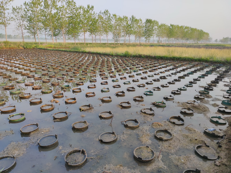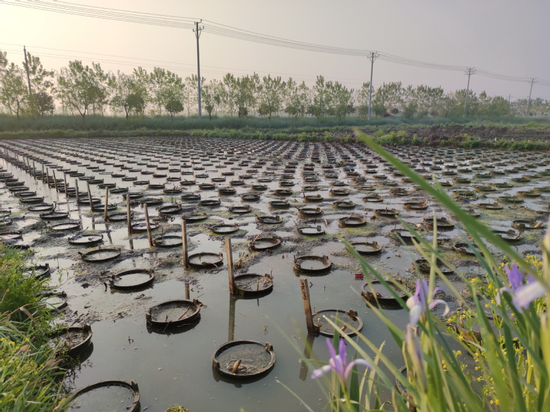 在春季萬物復(fù)蘇季節(jié),我們走進(jìn)淮海愛蓮苑水生花卉有限責(zé)任公司的水生花卉苗圃內(nèi),經(jīng)常會(huì)看到那縱橫排列整齊的塑料桶和四角見方的塑料薄膜鋪陳在泥濘的畦地里,不懂內(nèi)情的人怎么也猜不出所以然。經(jīng)過我們現(xiàn)場察看和向花卉工咨詢,原來這些桶啊薄膜啊,全是苑區(qū)為了防止荷花混雜的道具。