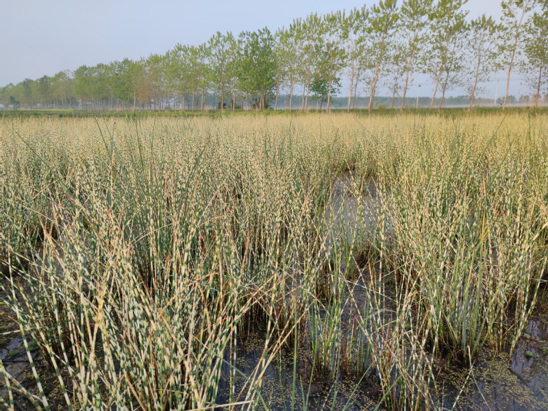 據(jù)田間的花農(nóng)介紹,這種植物是水蔥,為莎草科多年生宿根挺水植物,一般株高1-2米,莖桿高大通直,很像食用的大蔥,但不能食用。桿呈圓柱形,中空。在自然界中常生長在沼澤地、溝渠、池畔、湖畔淺水中。因該植物的地上部分可入藥,夏秋季采收,洗凈、切段、曬干,具有利水消腫之功效。此外,水蔥在水景園中主要做后景材料;其莖桿可作插花線條材料,也用作造紙或編織草席、草包材料。所以水蔥無論是在水邊池旁布置,還是作為后期藥物及材料使用,都具有極大的利用和觀賞價值。