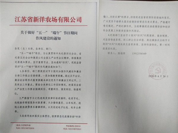 4月28日,新洋農場有限公司收到了集團公司紀委在墾區(qū)公務接待、公務用車、通訊費專項整治情況和脫貧攻堅、住房改善、人居環(huán)境三大任務推進落實情況專項監(jiān)督中檢查出來的問題清單。接到文件后,農場公司迅速召開作風建設突出問題專項整治動員部署會,結合“五一”“端午”節(jié)日期間的作風建設,要求有關部門嚴格把關,確保整改落實到位,并提醒廣大黨員干部要時刻緊繃紀律之弦,嚴格遵守中央八項規(guī)定精神和廉潔自律有關要求。