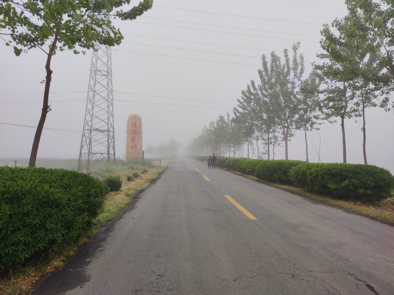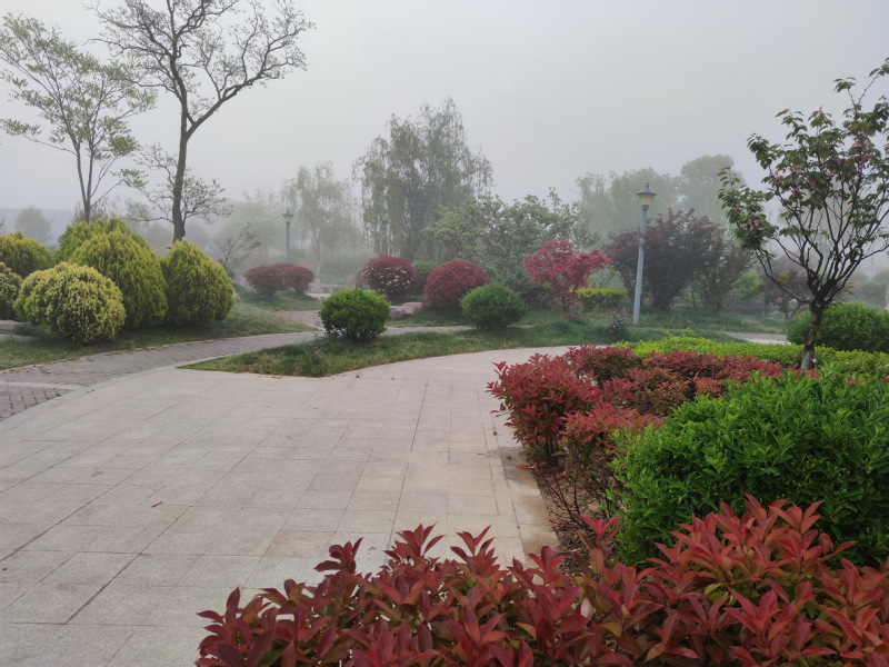 在曙光初露之時(shí),迎五一健身跑的習(xí)慣就讓我早起。沒想到今天的晨霧漫無邊際地籠罩著淮海大地,雖然不是很濃的那種,但也讓淮海的建筑和景色,在霧氣中顯得朦朧和分外寧靜。此時(shí)照例又經(jīng)過農(nóng)場公園、蘇北灌溉總渠上快速地散步,見到了霧氣下農(nóng)場那些美麗的風(fēng)景,這些風(fēng)景與水霧連成一體,特別是遠(yuǎn)處的景色與水霧連著天、搭著地,又茫茫然,若茫茫大霧越濃時(shí),遠(yuǎn)處又是一遍模糊,似乎這些風(fēng)景成了我眼前夢幻般的仙境。