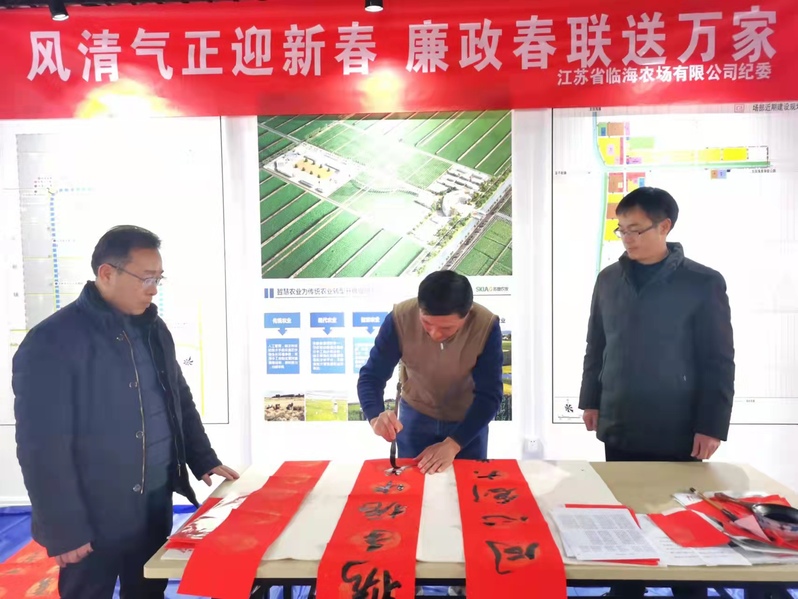 “風(fēng)清氣正迎新春,廉政春聯(lián)送萬家”、“治政須憑三尺法,為官應(yīng)尚四知風(fēng)”……一副副清新俊逸、飽蘸廉潔元素的春聯(lián)在書法愛好者筆下生動呈現(xiàn),散發(fā)出淡淡的墨香和濃濃的新春祝福。近日,臨海農(nóng)場公司紀(jì)委聯(lián)合工會,以春聯(lián)為載體,傳播廉政文化,傳遞廉政理念,為各基層黨組織、居民群眾寫春聯(lián)送福,營造了“廉”味十足、歡樂祥和的新春氛圍。