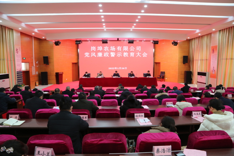 為深入推進(jìn)全面從嚴(yán)治黨,加強(qiáng)黨風(fēng)廉政建設(shè),引導(dǎo)廣大干部職工過一個(gè)廉潔年、干凈年,1月26日,崗埠農(nóng)場公司在職工之家大會堂召開黨風(fēng)廉政警示教育大會。農(nóng)場公司黨委書記、董事長、分公司總經(jīng)理趙志出席會議并作講話。黨委副書記、總經(jīng)理王建波,紀(jì)委書記姜杰、分公司副總經(jīng)理寧興時(shí)、農(nóng)場公司總經(jīng)理助理何璜煒,黨委理論學(xué)習(xí)中心組成員、基層黨組織書記參加會議。