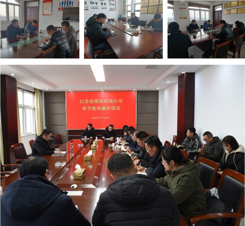 2022年春節(jié)將至,為進一步嚴明紀律正風(fēng)肅紀,有效防止“四風(fēng)”反彈回潮,杜絕“節(jié)日病”問題在農(nóng)場的發(fā)生,在淮海營造出風(fēng)清氣正的節(jié)日氛圍,1月28日下午,淮海農(nóng)場有限公司紀委書記孫國祥召開2022年春節(jié)節(jié)前集體廉政談話會。農(nóng)場公司、淮海分公司等科級助理以上人員分別參加節(jié)前集體廉政談話會。