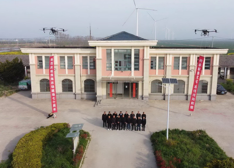 為體現(xiàn)本單位特色,七分場社區(qū)工會決定選擇日出時分和當下最先進的農(nóng)田植保機大疆T40表達對農(nóng)場的滿腔熱愛。為拍攝視頻,全體工作人員于10日凌晨五點有序排列在七分場海堤上等待日出,配合音樂,全心投入錄制視頻,用整齊劃一的口號表達了對農(nóng)場的祝福。“實力淮海、創(chuàng)新淮海、和諧淮海、美麗淮海”,一聲聲響亮的口號,是七分場全體工作人員的心聲,也代表著淮海人對農(nóng)場深深的愛意和祝福。在接下來的工作中,他們將堅守崗位、嚴格履職,用實際行動確保淮海發(fā)展勢頭持續(xù)穩(wěn)定,喜迎農(nóng)場成立70周年大慶。