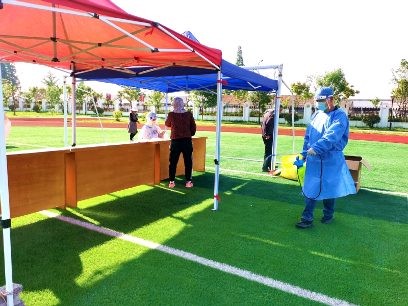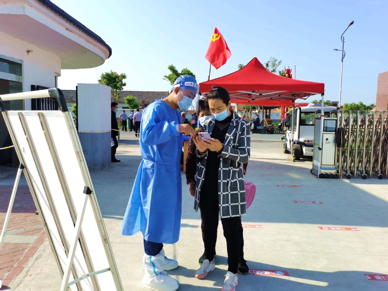 我在崗,您省心。“能做一點是一點,疫情防控是我們大家共同的事?!苯髁潦巧鐓^(qū)機關黨支部一名預備黨員,當他得知5月3日夜班值班人員臨時有事便主動請纓,從晚上八點到次日早晨八點,他把承諾當做責任來踐行。5月4日農(nóng)場組織全員核酸檢測,他一掃夜班值守的疲憊,直奔迎湖健身廣場核酸采樣點,背上消毒機進行現(xiàn)場環(huán)境消殺。劉圩小學采樣點,只見一位“小藍”手拿擴音喇叭對著居民喊話:“病毒無情人有情,健康連著你我他,請大家保持一米線?!苯?jīng)過仔細辨認大家才認出她是社區(qū)財務劉玉?!捌綍r聲音不大,維持秩序時聲音倒不小?!贝蠹壹娂姙樗c贊?!澳茫埑鍪旧矸菪畔?。”三分場工作人員劉昕身穿白色防護服,正忙著采集身份信息。朝陽下,汗水浸透了衣衫、曬紅了臉頰,他卻沒有一聲抱怨。當天他共采集490個信息,這也是他連續(xù)五次完成三分場采集點數(shù)據(jù)采集任務。