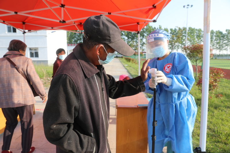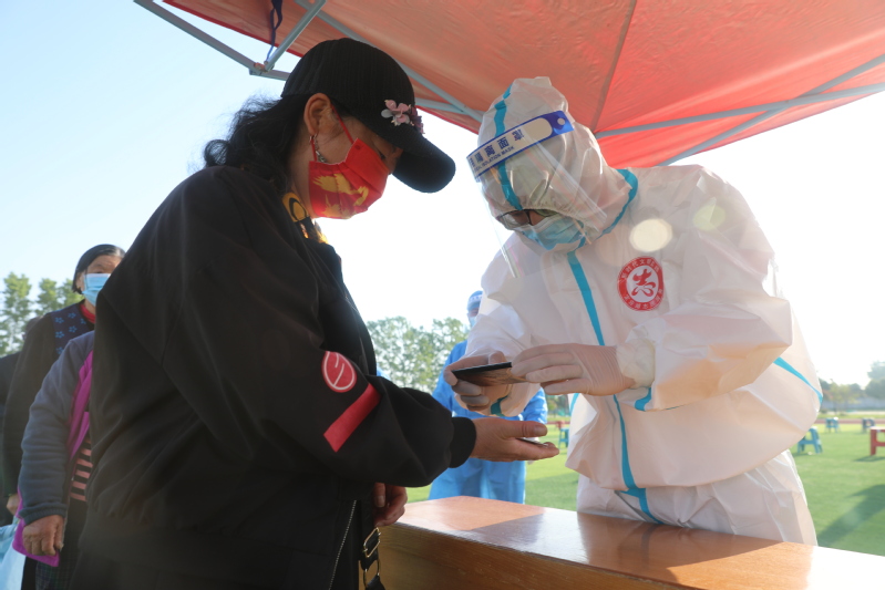 黨有號召,團有行動。一大早,農(nóng)場公司青年黨員、團員來到現(xiàn)場,維持秩序、督促掃碼測溫、認(rèn)真核對居民身份信息,以實際行動書寫志愿精神,用奮勇爭先詮釋青年力量。