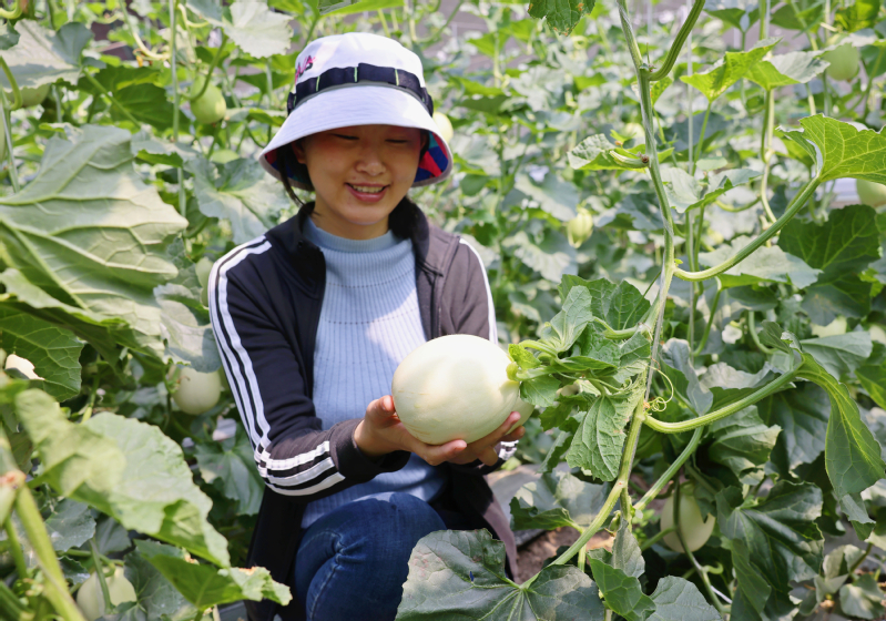 5月4日,江蘇農(nóng)墾崗埠農(nóng)場富民科技園工人正在采摘洋香瓜供應(yīng)市場。崗埠農(nóng)場富民科技園依靠緊鄰市區(qū)的區(qū)位優(yōu)勢,種植可觀光采摘的花卉、蔬菜、瓜果品種,打造以生態(tài)采摘、旅游觀光為特色的休閑觀光農(nóng)業(yè),形成了以雛菊和百合為主,以甜瓜、西紅柿等瓜果蔬菜為輔的整體產(chǎn)品結(jié)構(gòu)輻射帶動花農(nóng)增收,全場2400畝高效農(nóng)業(yè)年獲利5000萬元左右,取得良好經(jīng)濟效益和社會效益。