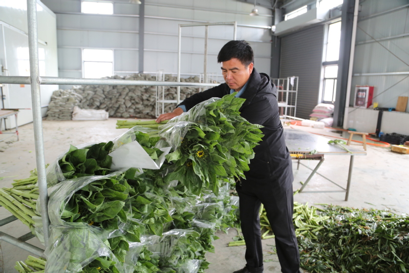 “現(xiàn)在棚里種的向日葵品種叫‘文森特’,其生長周期為60天,自今年三月份種下后,已于5月11開始采摘銷售,采摘期約為半個月。目前行情很好,價(jià)格也比較喜人?!眲⒑I贿呎戆b貨架上向日葵花,一邊介紹?!跋蛉湛哂谐杀镜汀⒑霉芾?、抗風(fēng)險(xiǎn)的特點(diǎn),這批花剛成熟,上市量遠(yuǎn)沒有達(dá)到高峰,加之疫情影響逐漸減小,銷售也是供不應(yīng)求,許多客商爭相要貨?!?/span>