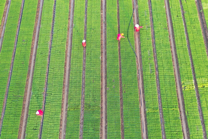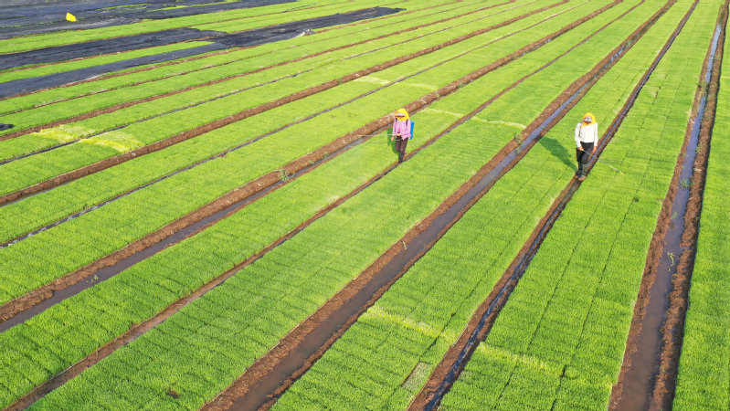 秧好半熟稻,苗好產(chǎn)量高。5月21日,小滿,寶應(yīng)湖農(nóng)場三生產(chǎn)區(qū)職工正在進(jìn)行小秧管理。