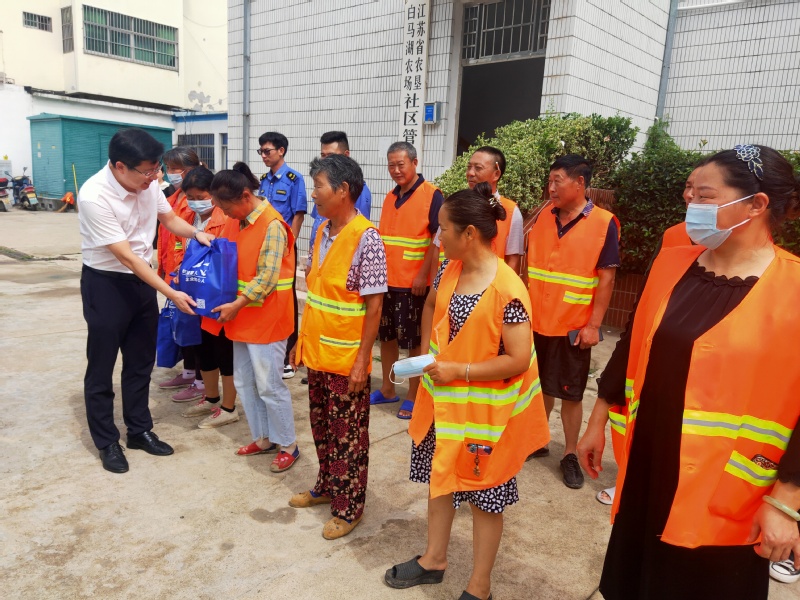 正值盛夏,為切實做好一線環(huán)衛(wèi)工人的防暑降溫工作,保障戶外高溫作業(yè)職工的安全健康,7月18日上午,白馬湖農(nóng)場公司工會主席冼永帥帶領(lǐng)相關(guān)工作人員前往農(nóng)場社區(qū)開展“情系環(huán)衛(wèi)工 高溫送清涼”活動,為高溫下仍在一線揮灑汗水的20名環(huán)衛(wèi)工人送上了夏日的清涼和問候。