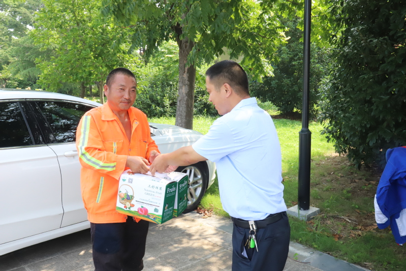 炎炎夏日,環(huán)衛(wèi)工人們汗流浹背,到處都有他們勤勞的身影。為讓農(nóng)場公司環(huán)衛(wèi)工人在盛夏里能感受到絲絲清涼,近日,復興圩農(nóng)場公司在黨委委員、副總經(jīng)理、工會主席蘇學軍的帶領下,開展“關愛環(huán)衛(wèi)工人炎炎夏日送清涼”活動。