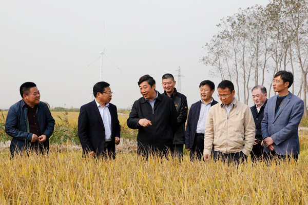 10月25日上午,集團(tuán)公司總經(jīng)理、蘇墾農(nóng)發(fā)股份公司董事長胡兆輝一行到黃海檢查指導(dǎo)工作。黃海農(nóng)場有限公司黨委書記賀在銳,董事長、總經(jīng)理李衛(wèi)東等陪同并匯報(bào)工作?! 『纵x深入三秋田間、場頭